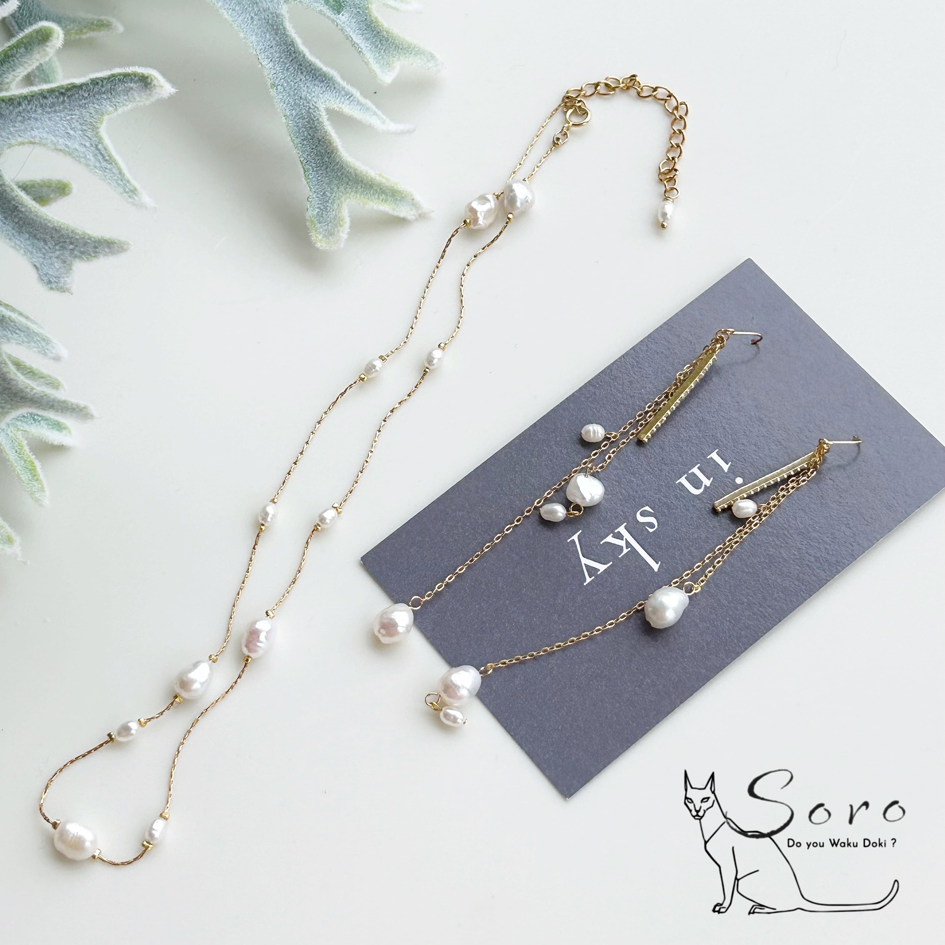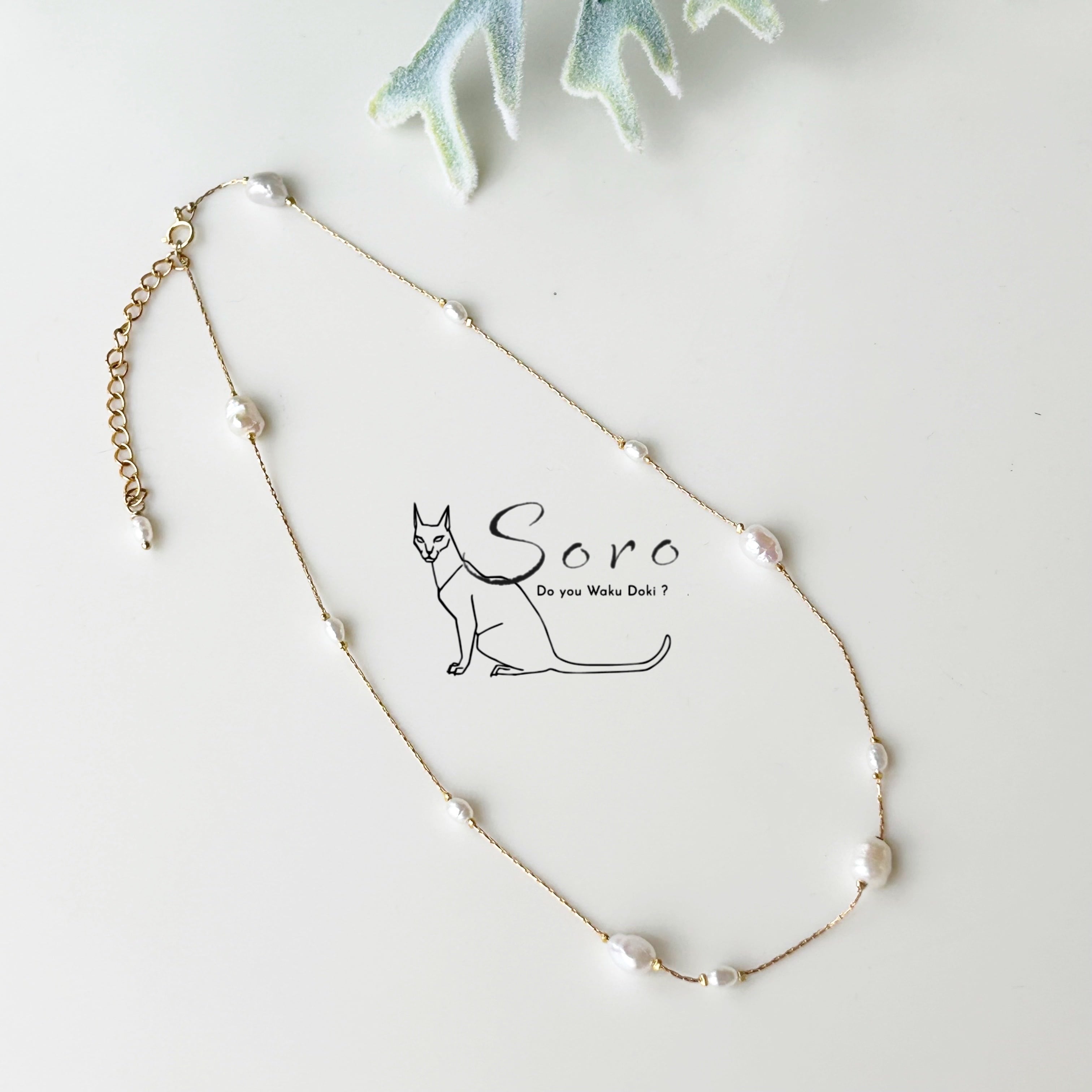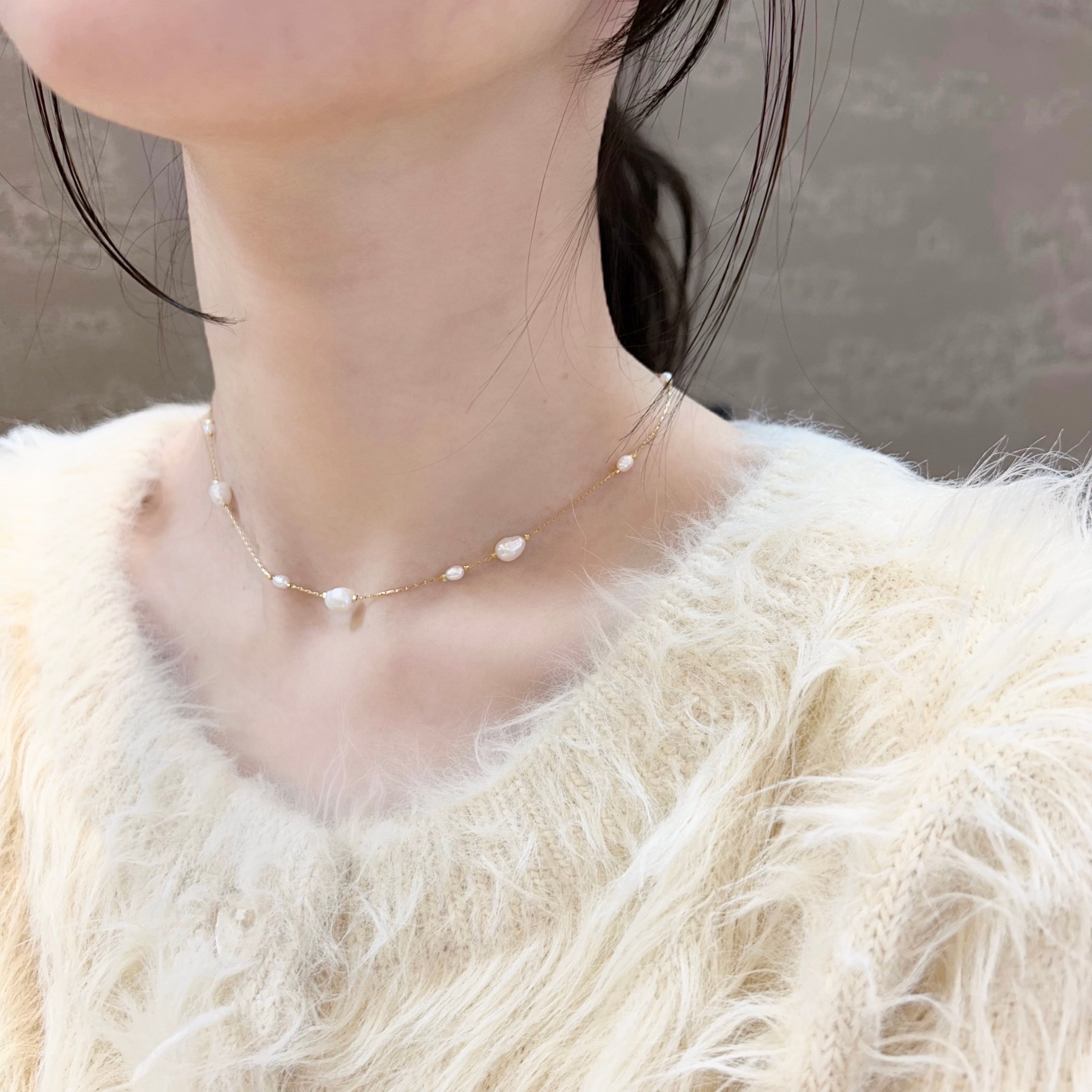 上品でナチュラルな輝きを放つ不揃いの淡水パールが、美しく連なるネックレス。