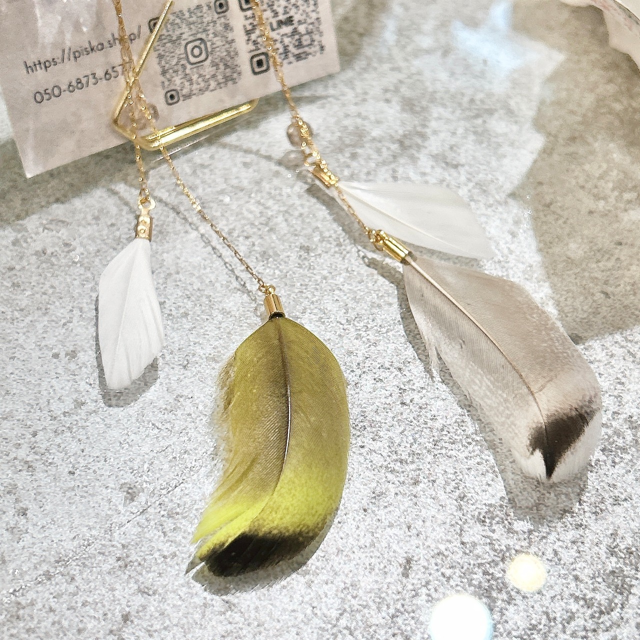 ふわりと舞う羽に、きらめく天然石たちを添えて。