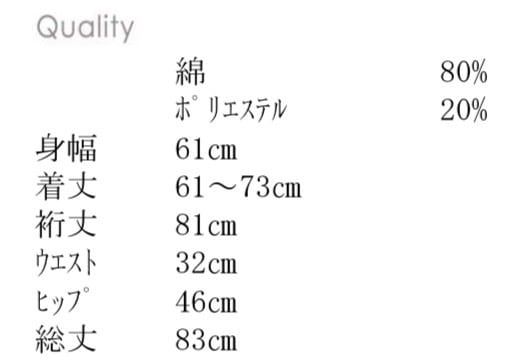 ウエスト 32cm ヒップ 46cm 総丈 83cm