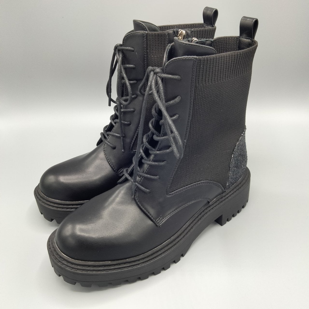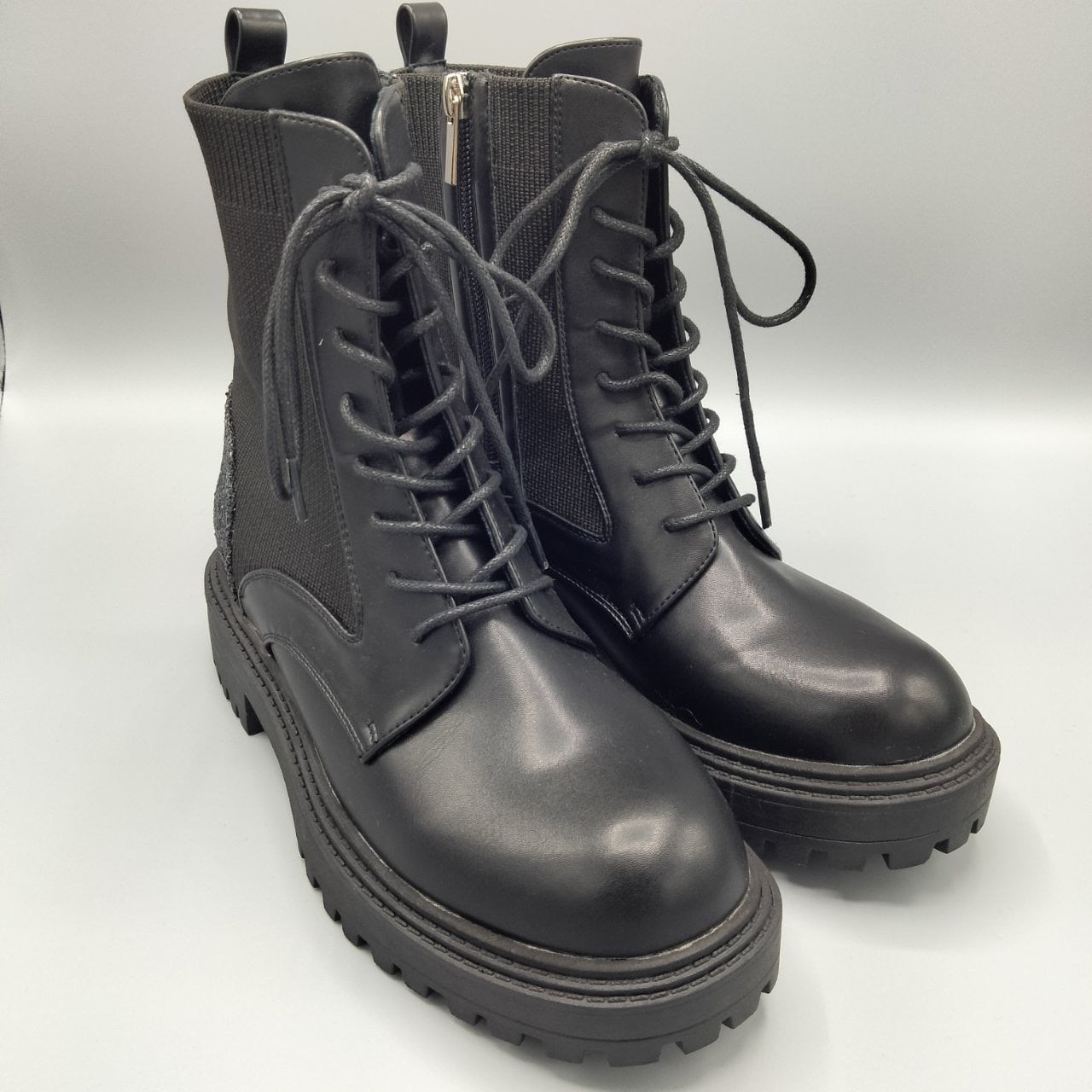 Haccccy かかとキラキラレースアップブーツ【HY-003】