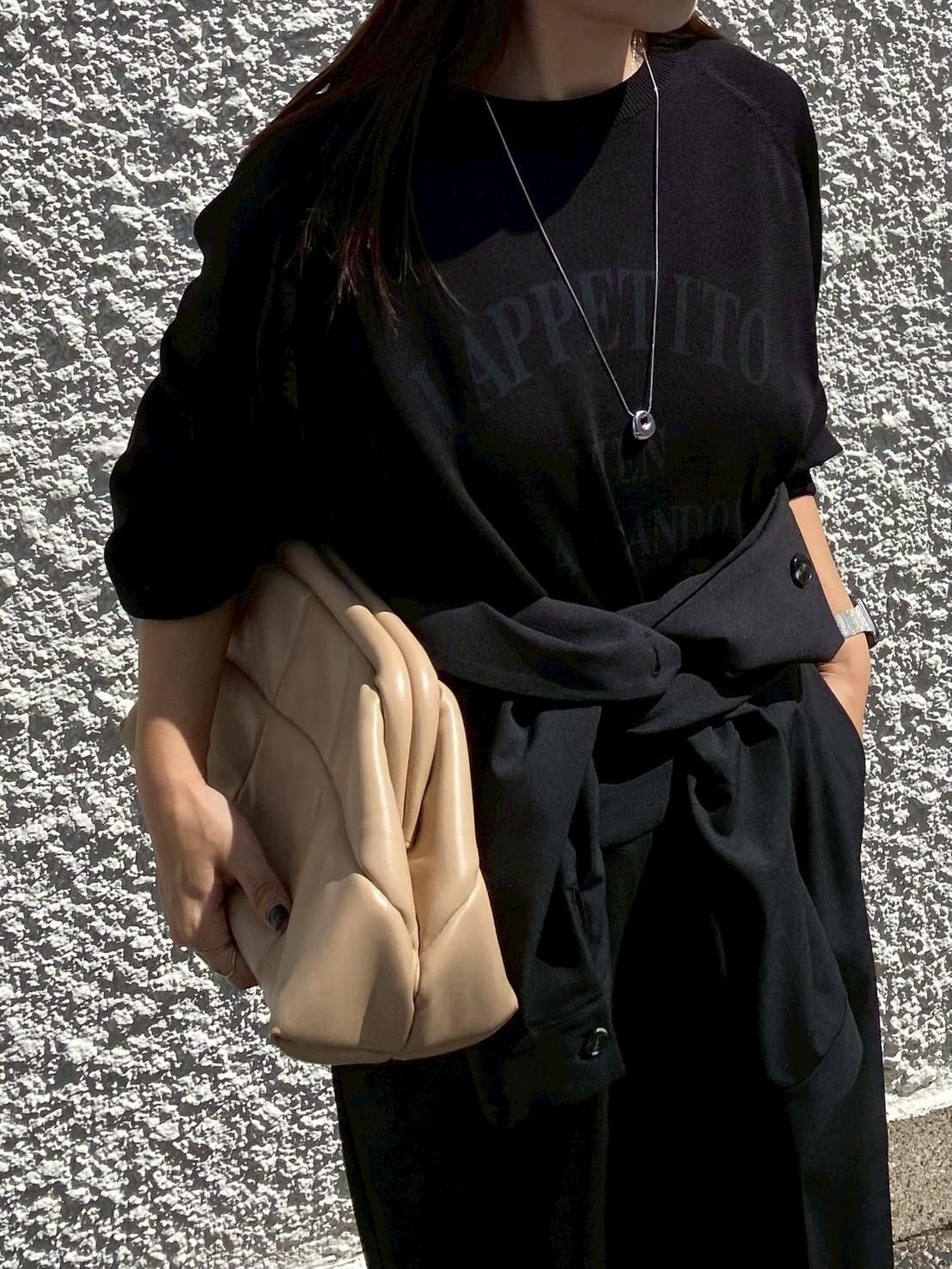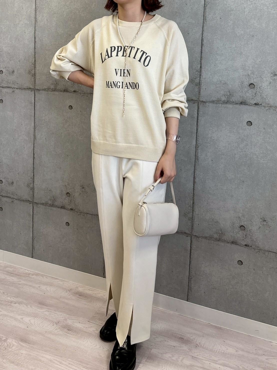 シンプルなロゴプリントが印象的なこのニットは、洗練されたデザインと快適な着心地が両立した逸品です。柔らかな素材感が心地よさを提供し、普段のカジュアルスタイルにはもちろん、ちょっとしたお出かけシーンにも対応できる優れたアイテムです!