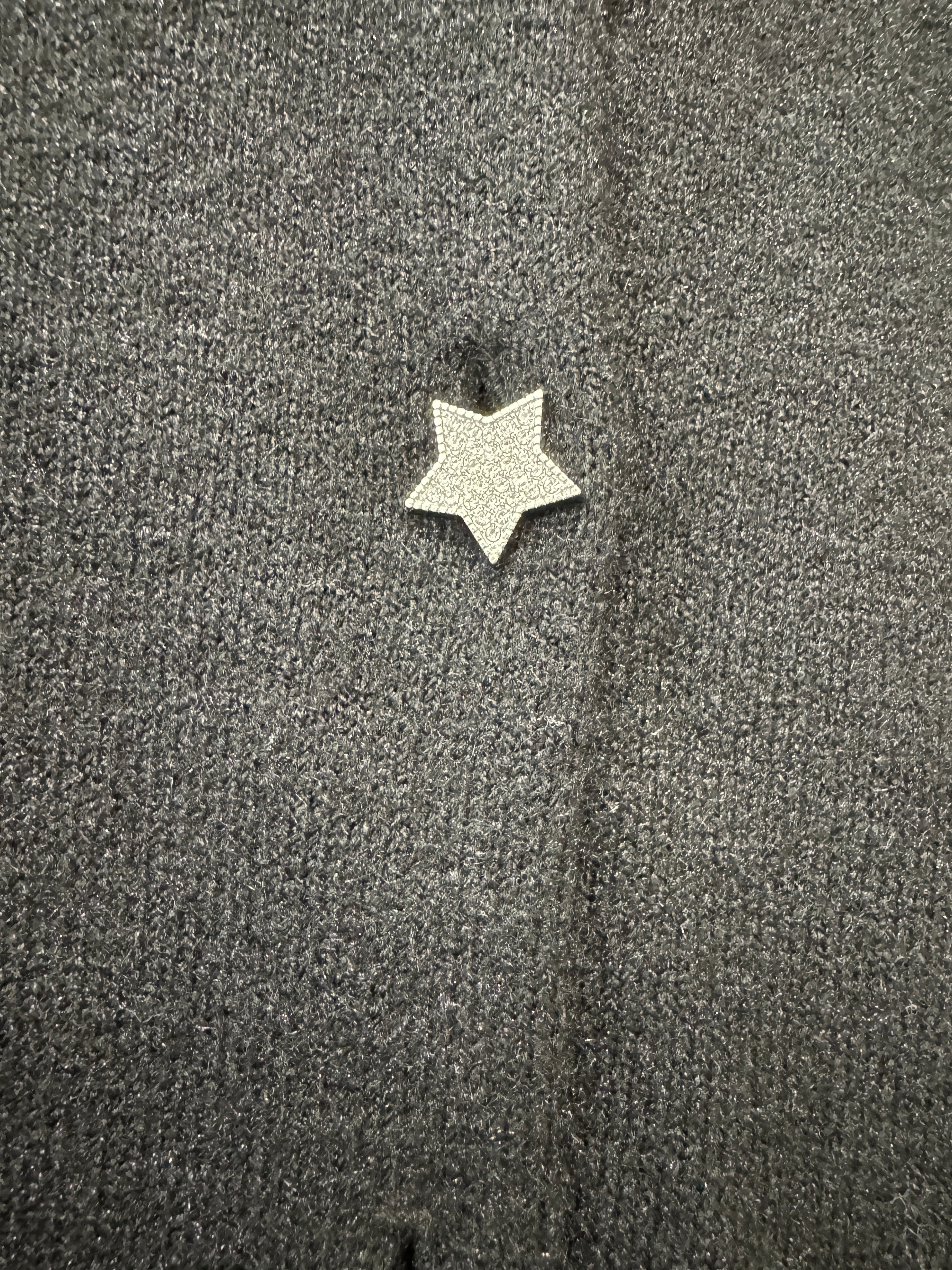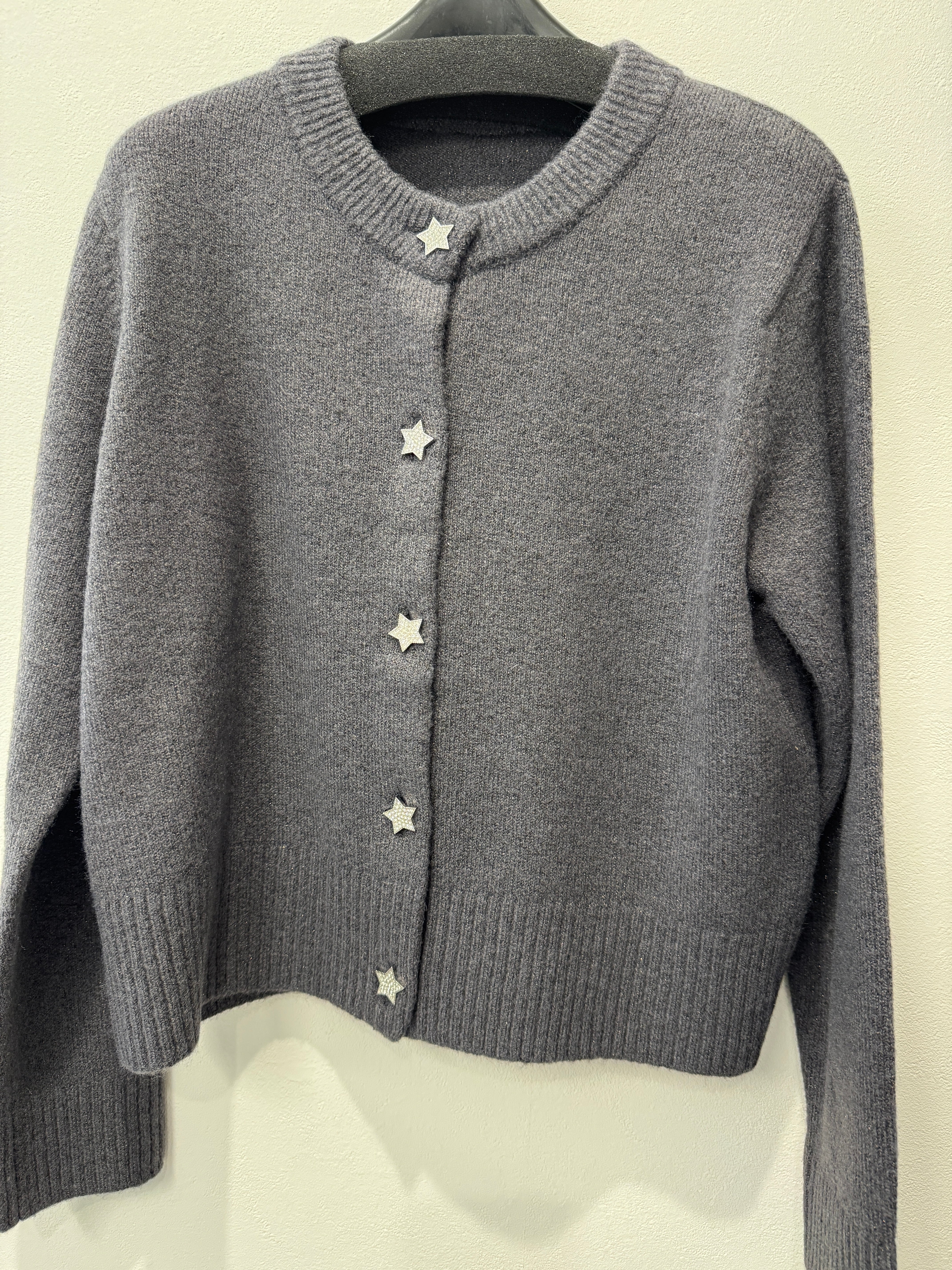 星ボタンが施されたラメ入りニットカーディガンは、シンプルながらも華やかな印象を与えるアイテム!光を受けてきらきらと輝く素材は、秋冬コーディネートに新しい風を吹き込みます。デニムやスカートと合わせることで、カジュアルにもフォーマルにも自在に変化します。