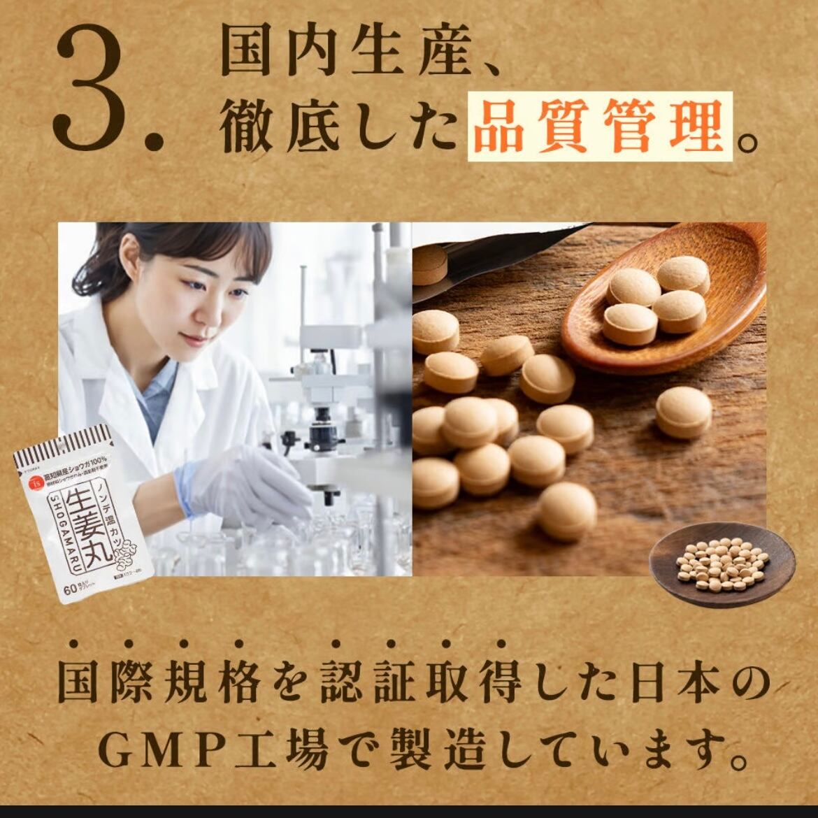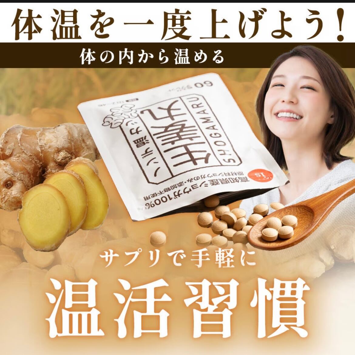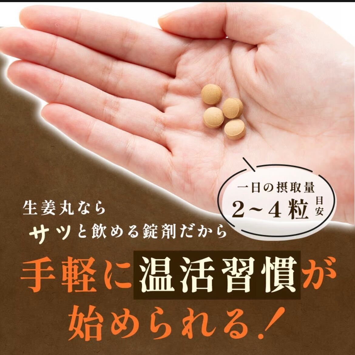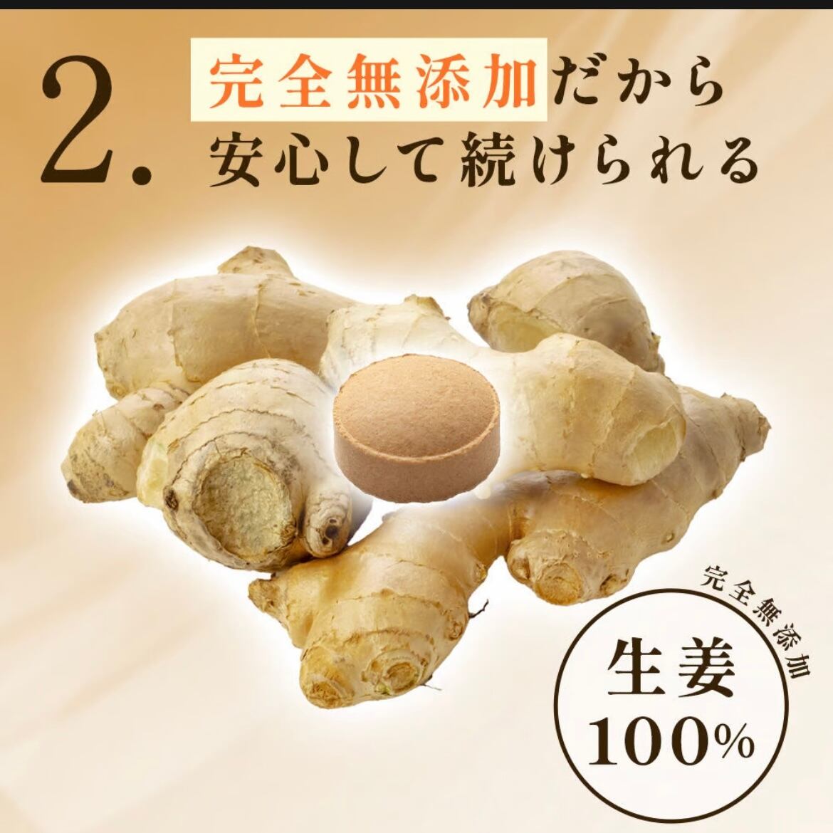 添加物は一切加えず、生姜の成分「ジンゲロール」と「ショウガオール」を手軽に毎日取りやすいタブレットにしました。